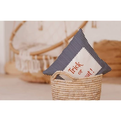 16″x16″ Halloween Trick Or Treat Ticking Square Throw Pillow – E By Design