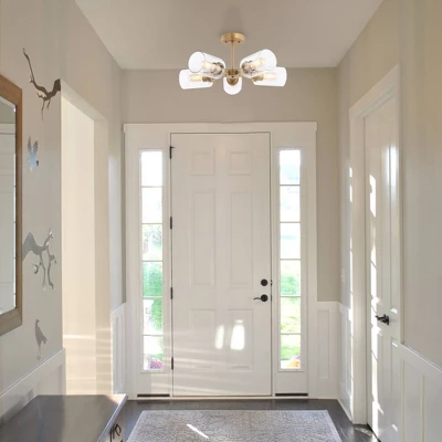 Replace outdated kitchen, living room or bedroom lighting with an on-trend Edison light fixture for a minimalist-modern makeover. At less than 10″ high, this fixture is ideal for low ceilings. Our light fixtures work with LED-compatible dimmers; professional installation is recommended. Eco-friendly 4W LED bulb included. Takes 5 bulbs and compatible with TYPE “A” 25W or CFL 9W or LED 5W. Color Temperature: 2700K. CRI: 80. Before cleaning any lamp shade or fixture, disconnect the power source. Wipe with a soft, dry cloth. Avoid the use of chemicals and household cleaners as they may damage the finish.
