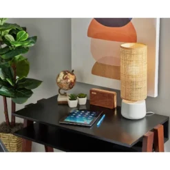 Off-white cotton shades and an antique bronze finish are combined in the Bellows tree lamp for a look that easily fits into a Zen-inspired or rustic modern living room. Three bulbs are controlled by a three-way rotary switch located on the pole. The 3-way rotary socket switch will only work with a 3-way light bulb, otherwise this lamp will function with simple on/off switch at its highest setting. This lamp has a simple black cord and is smart outlet compatible. Bulbs are not included.