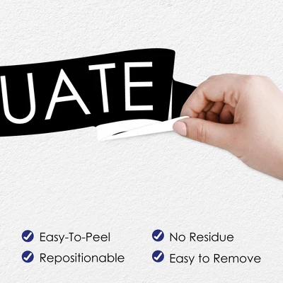 Black and White Grad – Best is Yet to Come Wall Decals Backdrop includes 1 sheet of vinyl wall stickers that include letters and shape pieces that form the perfect Black and White Congrats backdrop for your Graduation Party. Wall Decal sheet measures 50 inches wide by 16.5 inches tall. Pieces range in size from 30 x 6.5 inches to 3.25 x 3 inches. Effortless Decor: The Black and White Grad – Best is Yet to Come stickers are an easy DIY party decoration that will make a big impact at your celebration. Stick them on a flat wall surface to create that picture-perfect setting and then grab your camera to capture all the fun. Easy to Use: Black and White Grad – Best is Yet to Come vinyl decals are easy-to-peel and repositionable. Wall art stickers will adhere to various surfaces including painted walls, plastic, wood, glass, and metal. To use, make sure your surface is clean and dry. Slowly peel the sticker from the paper to avoid tearing and smooth over with your hand. They are also easy to remove, leaving no residue. High-Quality Supply: Black and White Grad – Best is Yet to Come wall stickers come with a quality matte finish and vibrant colors. They are printed on water-resistant professional quality material and will arrive on one full sheet rolled. Made In The USA: Black and White Grad – Best is Yet to Come Wall Decals are designed and manufactured at our Wisconsin facility using materials that are Made in the USA.