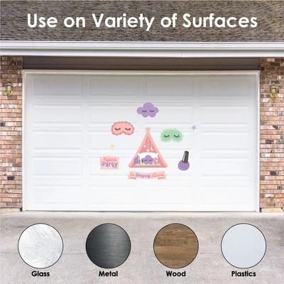 Big Dot of Happiness Pajama Slumber Party Wall Decals includes 1 sheet of 20 assorted vinyl wall art stickers that you can arrange to add a special touch to your home decor. Wall Decal sheet measures 50” wide by 16.5” tall. Pieces range in size from 15 x 11” to 2.5 x 2.5”. Effortless Decor: The Sleepover Decor wall stickers are an easy solution for bringing in some added charm to your space within minutes! You can use the wall decals for rooms, impressive photo backdrops, or as easy decor at your Girl Birthday Party. Easy to Use: Pajama Slumber Party vinyl decals are easy-to-peel and repositionable. Wall art stickers will adhere to various surfaces including painted walls, plastic, wood, glass, and metal. To use, make sure your surface is clean and dry. Slowly peel the sticker from the paper to avoid tearing and smooth over with your hand. They are also easy to remove, leaving no residue. High-Quality Supply: Pajama Slumber Party wall stickers come with a quality matte finish and vibrant colors. They are printed on water-resistant professional quality material and will arrive on one full sheet rolled. Made In The USA: Sleepover Decor Wall Decals are designed and manufactured at our Wisconsin facility using materials that are Made in the USA.