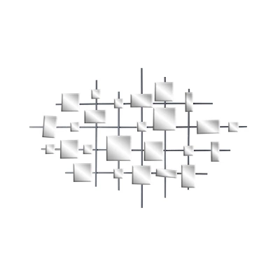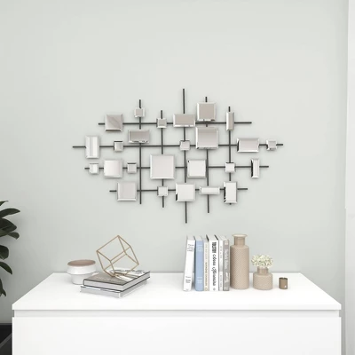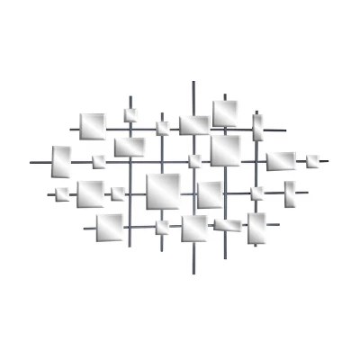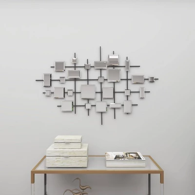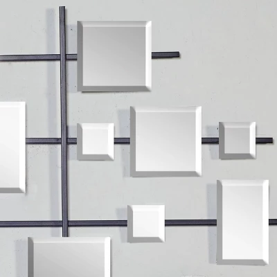 - •This glam-themed big mirror wall art showcases an elegant collection of square-shaped beveled mirrors floating on a lined grid forming an abstract geometric design