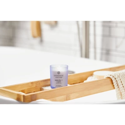 This Lavender Thyme Glass Jar Candle from Chesapeake Bay Candle helps create a relaxing atmosphere in any room of your home, while adding a sleek touch of style with its simplistic design. Emitting the herbal and soothing aroma of lavender and thyme when lit, this scented jar candle has a frosted glass design with a wooden lid, creating a stylish look that adds to the decor of any room when it’s not in use.