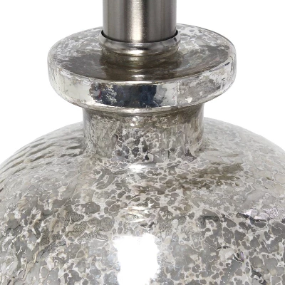 With a textured glass base and white fabric drum shade, this lamp is sure to update any room in your home with a little charm. This lovely lamp is crafted with an open bottom glass base in mercury. Perfect for adding the little refresh to your living room, bedroom, foyer or office that you’ve been looking for!