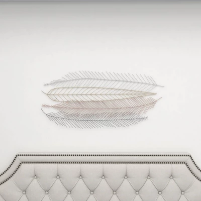 - •Metallic silver, gold, copper, and black metal finishes over the 4 metal feather sculptures adhered together