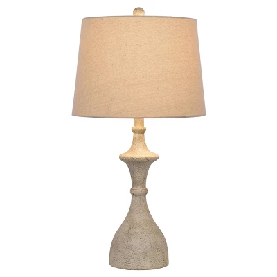 Cal Lighting’s Acoma 27″ pair of resin table lamps. Illuminate your space with this set of elegant resin table lamps. They feature a slim curvy silhouette with a white painted weathered finish. Both lamps ship complete with hardback linen shades and matching finials. These lamps each uses a 150W 3-Way bulb (not included). This pair of lamps and shades ships in one carton.