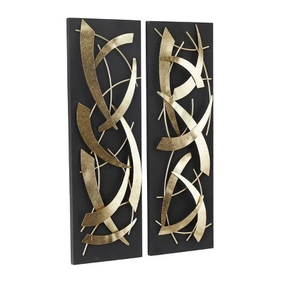 Set Of 2 Metal Abstract Dimensional Wall Decors With Wood Backing Gold – Olivia & May