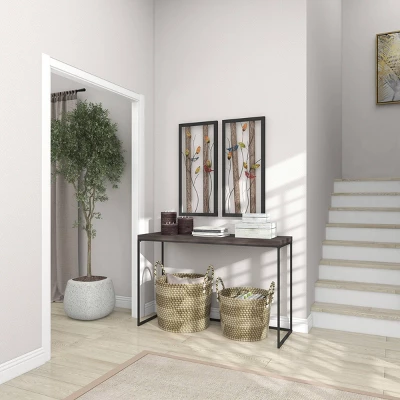 - Rectangular metal wall decor set sports black frames with multicolor leaf and bird embellishments