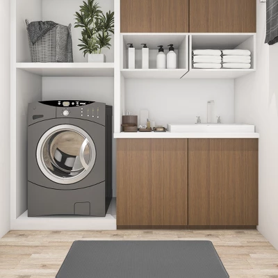 Bring this modern anti-fatigue Mat to any place in your home, from the entryway to the bathroom, on to the kitchen and laundry room. This Mat makes great use for high foot traffic areas without breaking a sweat. The Rubber backing enables it to stay in place keep durable for your usage.